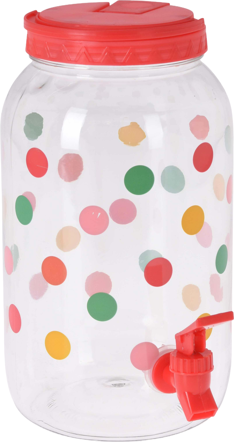 De Drankdispenser maakt elk feestje compleet. Met 3,5 liter inhoud tap je makkelijk je favoriete drankje. Ideaal voor limonade, water of cocktails. Het vrolijke stippenpatroon zorgt voor een zomerse sfeer. Dankzij de tapkraan schenk je zonder knoeien – perfect voor tuinfeest of camping.