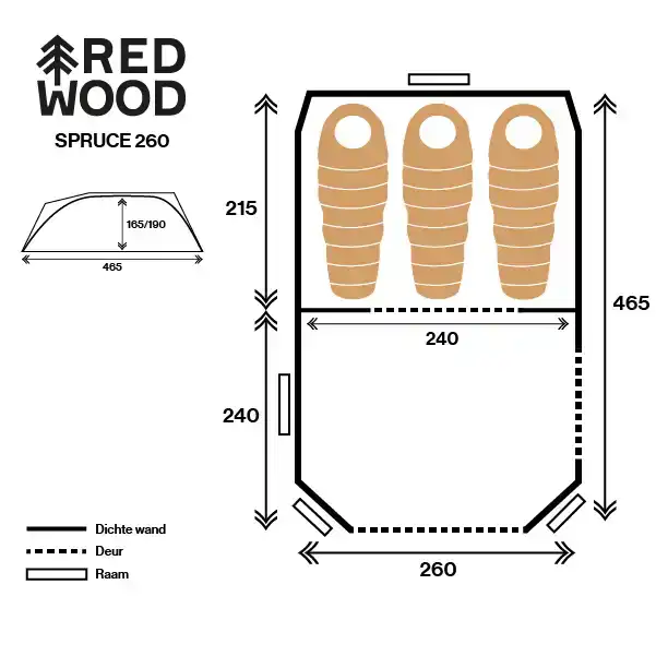 Ons eigen merk Redwood staat garant voor sterke, functionele en duurzame producten, en is niet voor niets vernoemd naar de hoogste boomsoort ter wereld: de Coast Redwood. De Spruce 260 is net als de bomen sterk en gaat lang mee, ook als je 'm blootstelt aan wisselende omstandigheden. Het tentdoek is gemaakt van duurzaam technisch katoen en dankzij de stokken van glasfiber is hij toch opvallend licht voor zijn formaat (ca. 25kg). Het maakt hem perfect voor korte trips of vakanties waarbij je veel onderweg bent. Met 3 slaapplaatsen en een stahoogte van ruim 2 meter is de Spruce verrassend ruim en dankzij zijn vele ruiten en luchtroosters ook nog eens heerlijk fris en comfortabel.