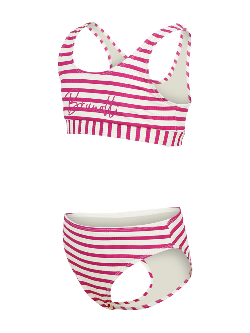 Steel de show bij het zwembad met deze Lunina Bikini van Brunotti. Deze vrolijk gestreepte meisjes bikini is gemaakt van zacht geribd materiaal en heeft een comfortabele sporttop. De streepjes op de bikini zijn niet gedrukt maar ingeverd. Bommetje!