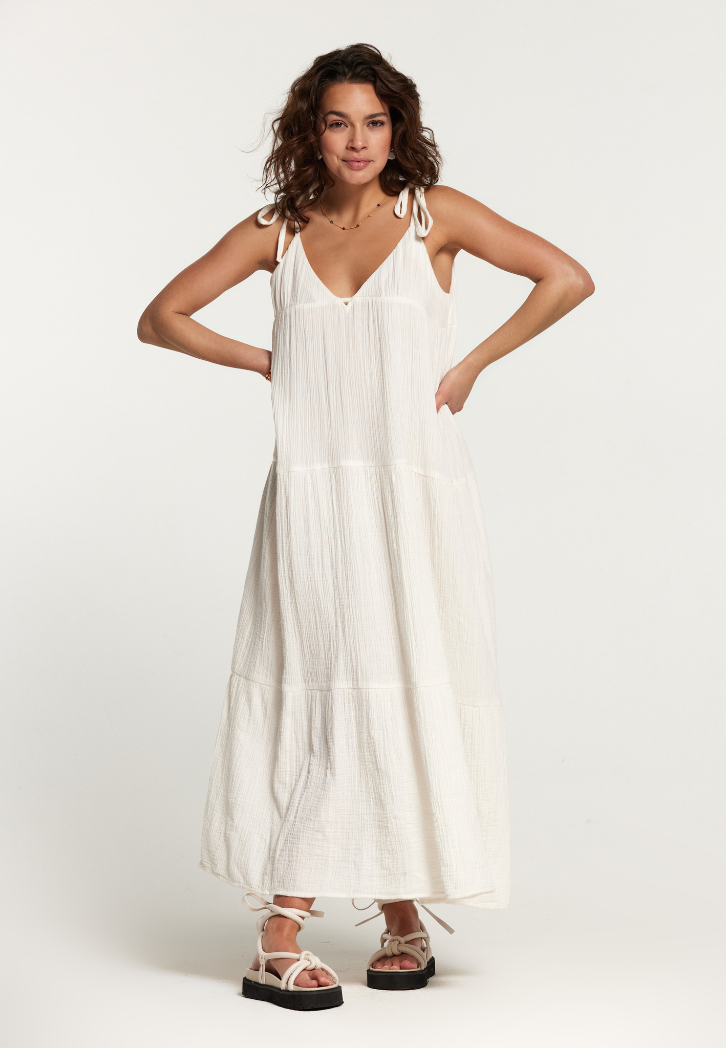 Deze Bogota jurk is gemaakt van een zachte mousseline stof van 100% katoen. De jurk heeft een v-halslijn met verstelbare bandjes om de gewenste pasvorm te creëren. Het is een perfecte jurk om de zomer mee door te zwieren!